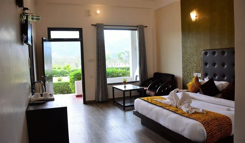 The refreshing pools and hill views considerably makes this resort the best place to stay, the poolside is extremely suggested for chillaxing and enjoying the amazing view of the hills while hanging out in the pools provide you extreme pleasure. Corbett Jungle Treasure Resort is situated on the bank of Kosi river in Dhikuli, Ramnagar in the Uttarakhand region. The resort is 31 kms. from Nainital. There are multi-cuisine restaurants offers an incredibly flavorsome dishes to the guests. Various tourist attractions such as Choti Haldwani, The Corbett waterfalls, Sitabani, Dhangari Museum, Garjiya Temple and many others are situated in the vicinity of the property. Jungle Treasure Resort in Jim Corbett is magnificently designated the exquisiteness of nature. It’s a blend of nature's ecstasy and luxury that makes it the best resorts in Jim Corbett. The spacious and clean rooms with modern conveniences such as free WiFi, air-conditioning, desk,telephone, sitting area and private attached bathrooms with hot/cold water and essential toiletries. The property claims facilities such as 24-hours front desk doctor on call, billiards, Table Tennis, Swimming pool, safari tours, taxi service( on demand), nature trails, sightseeing, safari tours, outdoor games, room service and onsite parking. The Corbett Jungle Treasure Resort is an assortment of adventure and excitement along with the premium quality of accommodation and exclusive amenities.