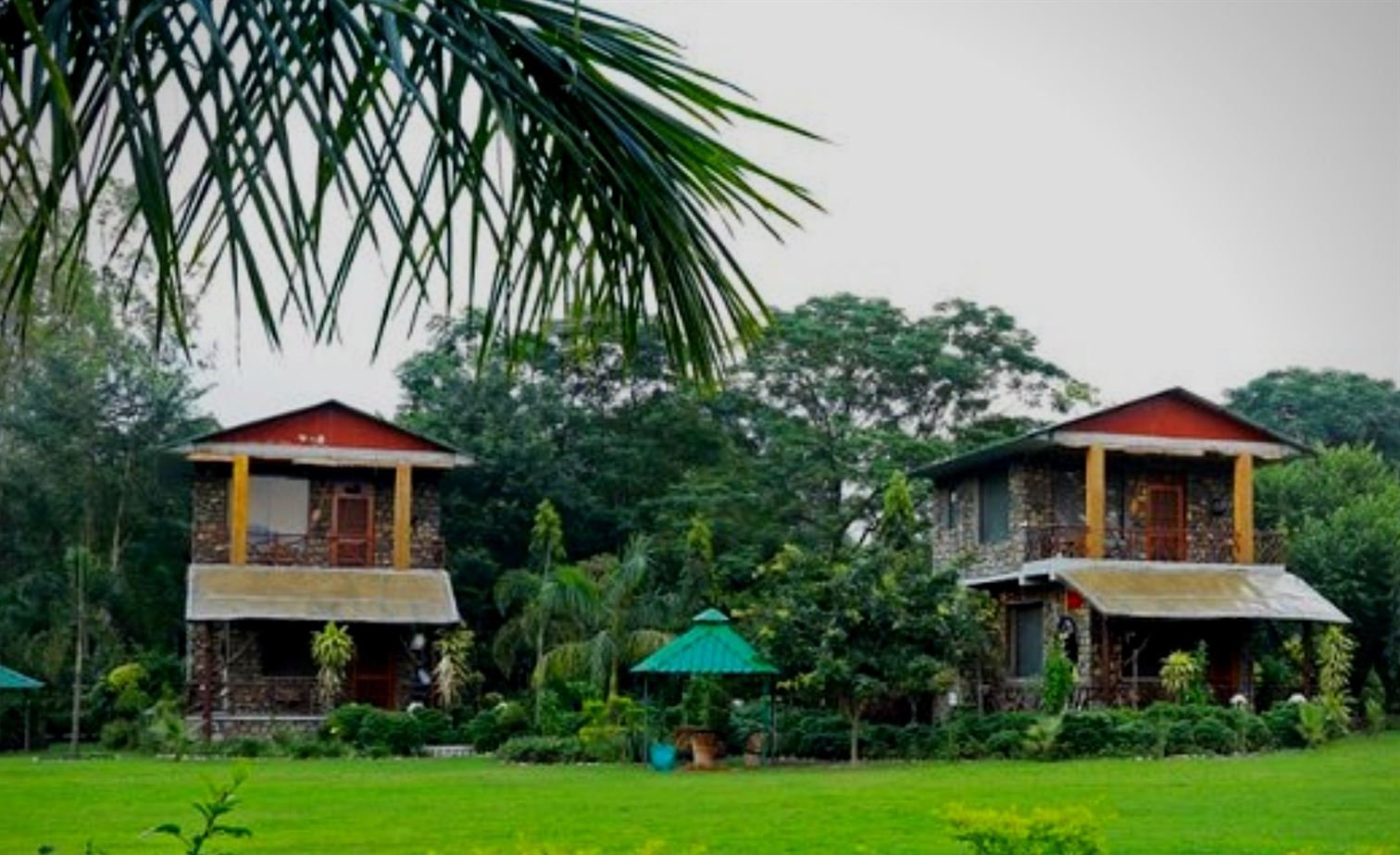 Tucked strategically at the edge of Corbett National Park, crosswise to the Mohaan Village in the Ramnagar District of Uttrakhand, showcase a gorgeous Kabeela Resort by Travel Recourse. Kabeela Resort by World Choice is the perfect location to get away from urban life, crowded tourist areas but so easily accessible to the wonders that Corbett Tiger Reserve National Park has to offer. Our distinctive jungle nature resort is spread across 6.5 acres of lush green at the edge of Kosi river & core area of tiger reserve where glimpses of common wildlife, picturesque sunrises and sunsets, sounds of birds, visit by tuskers, wild boars, hog deer, walking deer, sloth beer etc. in night are common visible and displays the colorful plants and flowers act as an exotic backdrop for our luxuriously appointed cottages.